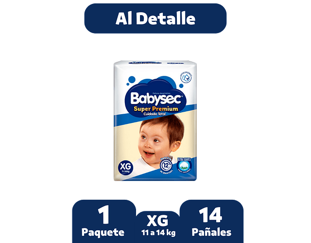 - Babysec Super PremiumEs hipoalergénico y le entrega a tu guagua hasta 12 horas de absorción, manteniendo su piel seca.