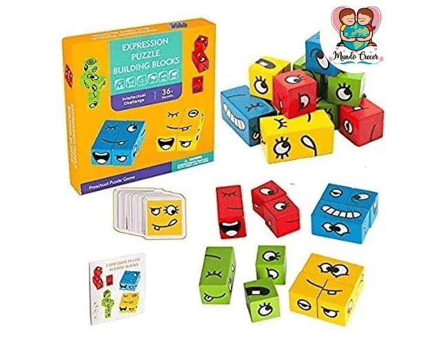 Este set incluye 12 bloques de madera con expresiones y 50 tarjetas desafiantes, ¡ideal para estimular el interés de los niños en juegos, resolución de problemas y desafíos cognitivos! 🎲👦👧