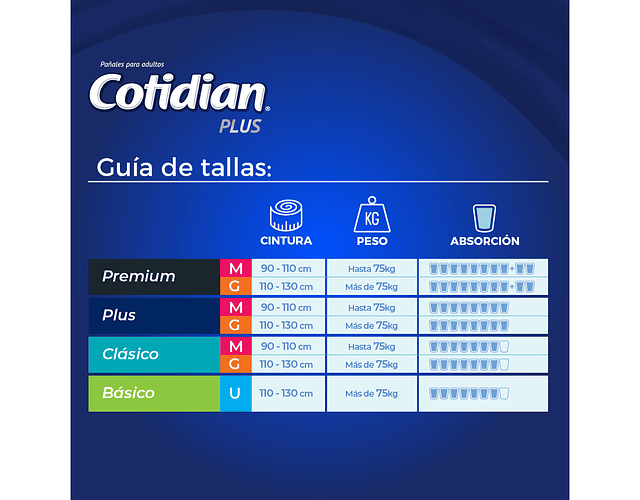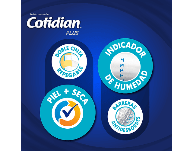 Pañales para adultos para incontinencia fuerte. Cotidian Plus ofrece máxima absorción que permite menos cambios en el día, brindando un mayor ahorro.