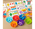 − Juego de asociación de colores y números para combinar los números del 1 al diez con cuentas en determinadas cantidades y colores.