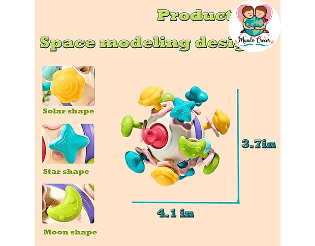 Pelota mordedor sonajero con forma de molécula para bebés.